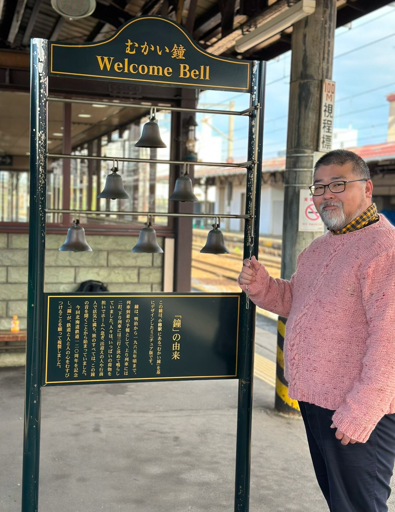 ピンクのツィードが可愛いいuncle Yasu手編みのセーター。